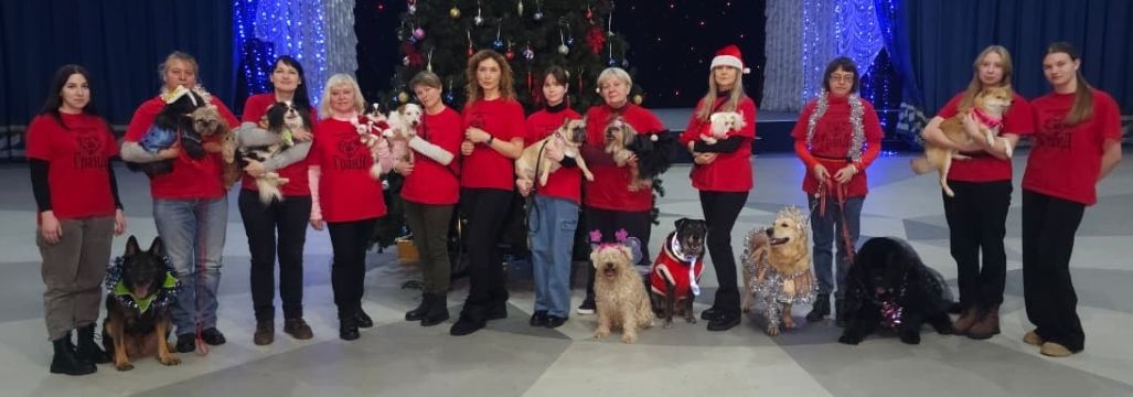 Волонтеры КЦ "Гранд" со своими питомцами на областной благотворительной елке