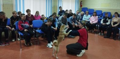 Рассказала ученикам школы № 7 о собаках, которые защищали Родину и несли службу рядом с людьми.
